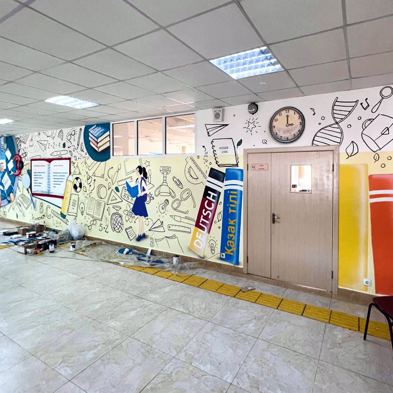 Роспись стен в школах, колледжах, университетах, детских садах.